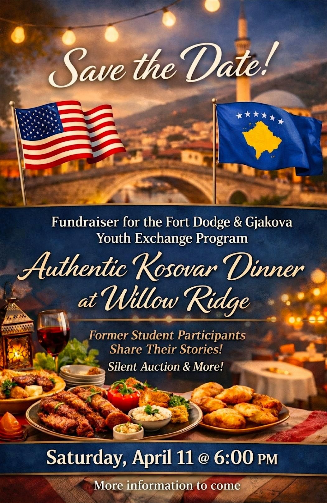 Get ready to dive into the amazing flavors of Kosovo! Join us in person to savor traditional dishes, enjoy lively music, and experience the warm vibes of Kosovo's culture. It's the perfect way to spend a fun evening with friends and family while discovering something new and tasty. Donβt miss out on this delicious journey, and learn more about the students and the impact this exchange has had on our students/ community.
