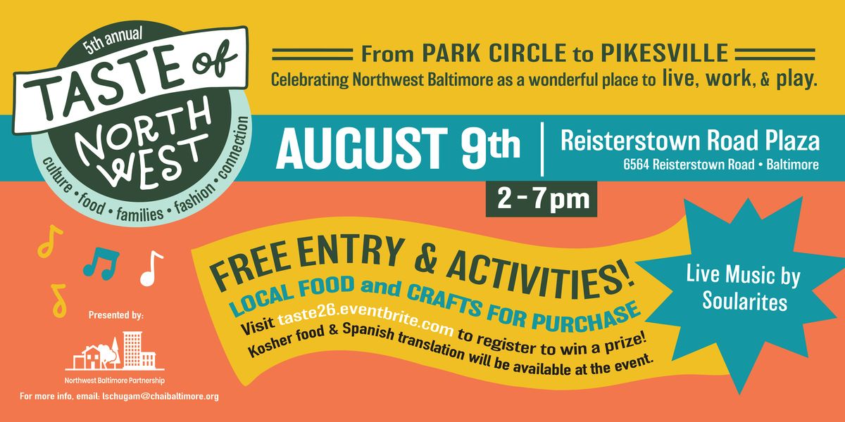 Event Location: Reisterstown Road Plaza, 6564 Reisterstown Rd. Baltimore, MD 21215.