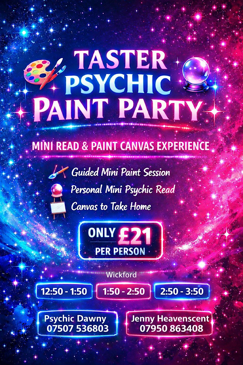 As part of the festival, you can also enjoy our Heavenscent Taster Psychic Paint Sessions β a fun and creative experience where you paint your own canvas while receiving a mini psychic reading. No experience needed, just relax, create and connect.
