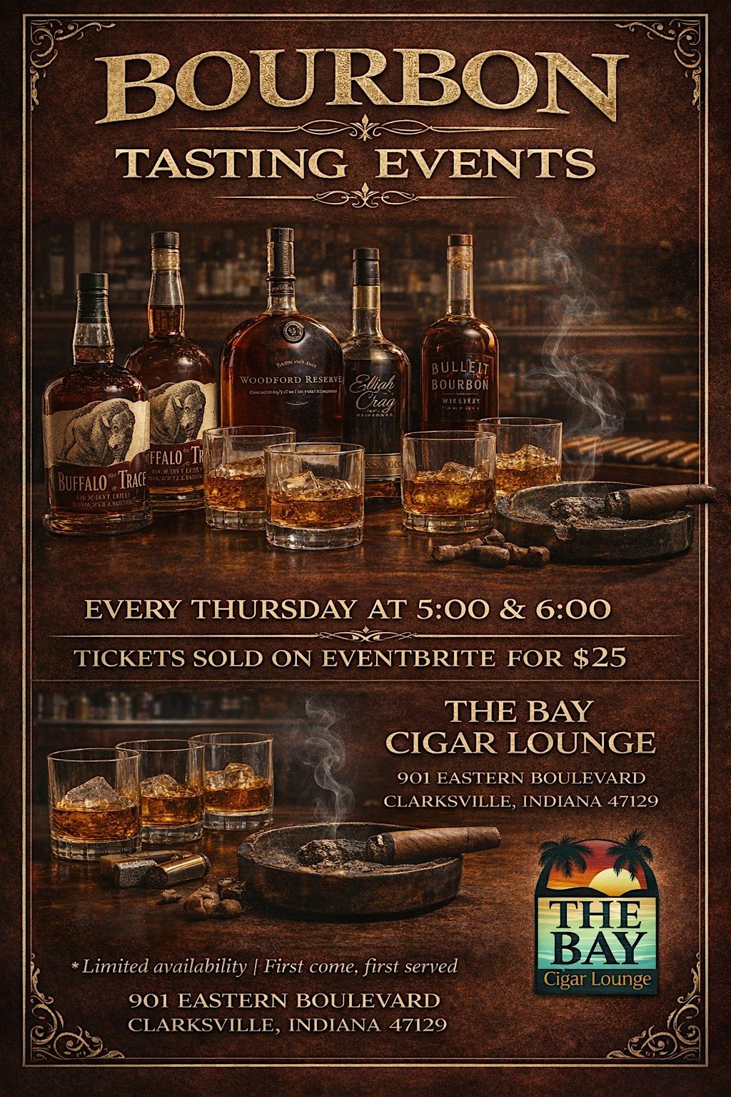 Plan to vidit The Bay after work Every Thursday at 5pm and 6pm for Tasting Bourbon at The Bay. A weekly bourbon tasting event for those with an appreciation for good bourbon. Expand your bourbon data base with us and dont forget to add a great cigar!