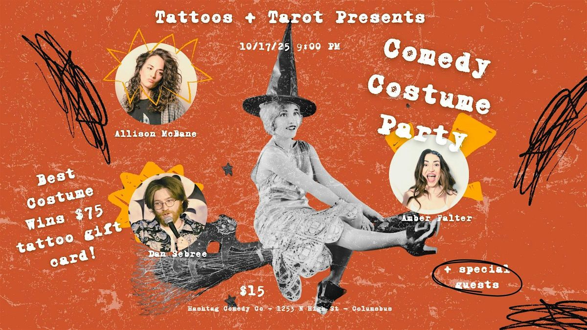 Tattoos + Tarot presents a Comedy Costume Party! Comedians Amber Falter and Dan Sebree will be making us laugh as we celebrate the beginning of Spooky Season. There will be extra tarot readings and special guests. Best costume wins a $75 gift card from Vesperteen tattoos. Come get your fortune read dressed in your Halloween best as you laugh the night away.