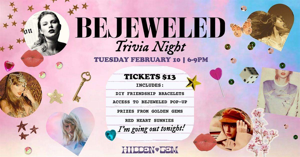If you are the person at parties who shares random facts about Taylor Swift that no one else seems to get, you definitely don't want to miss Bejeweled Trivia. We're teaming up with @bravotrivianight for a night through the Eras. There will be trivia, exclusive access to the Bejeweled pop-up & menu, DIY friendship bracelets, and Swiftie prizes from Golden Gems. Tickets are available now with the link in our bio, so like run don't walk!