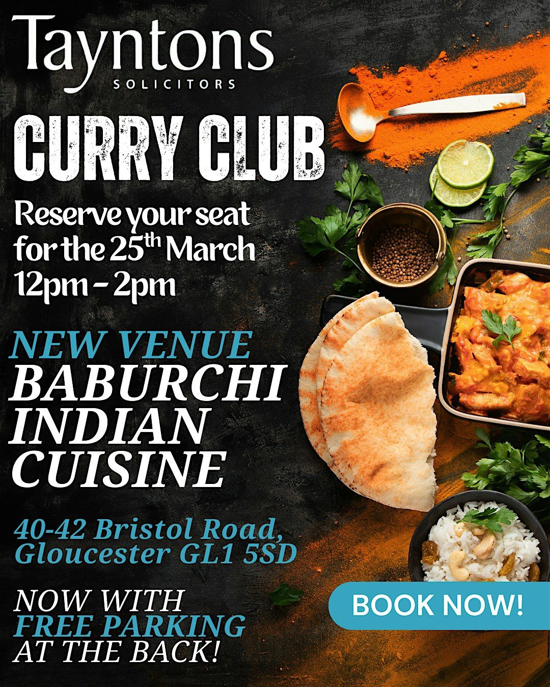 Curry Club is a friendly networking event organised by Tayntons Solicitors that brings together local businesses in an informal setting giving you the opportunity to meet new contacts or catch up with business professionals in your area.