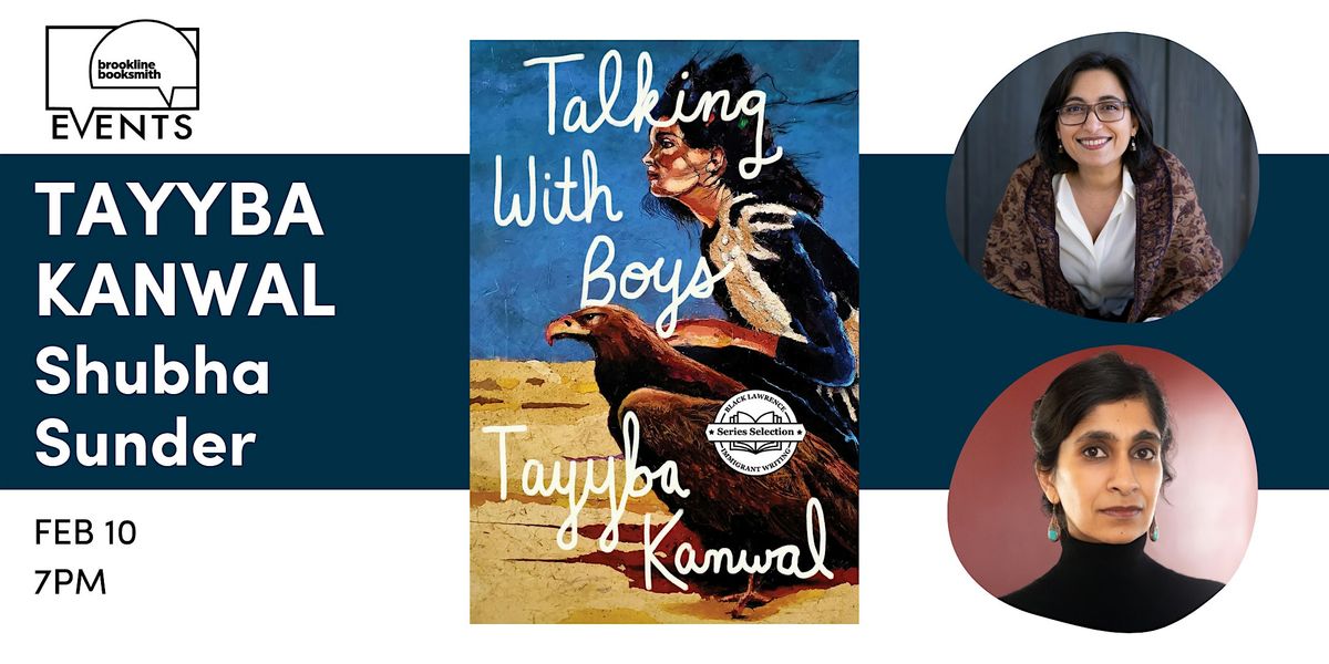Join us at Brookline Booksmith to celebrate the release of Talking with Boys with author Tayyba Kanwal, in conversation with Shubha Sunder.