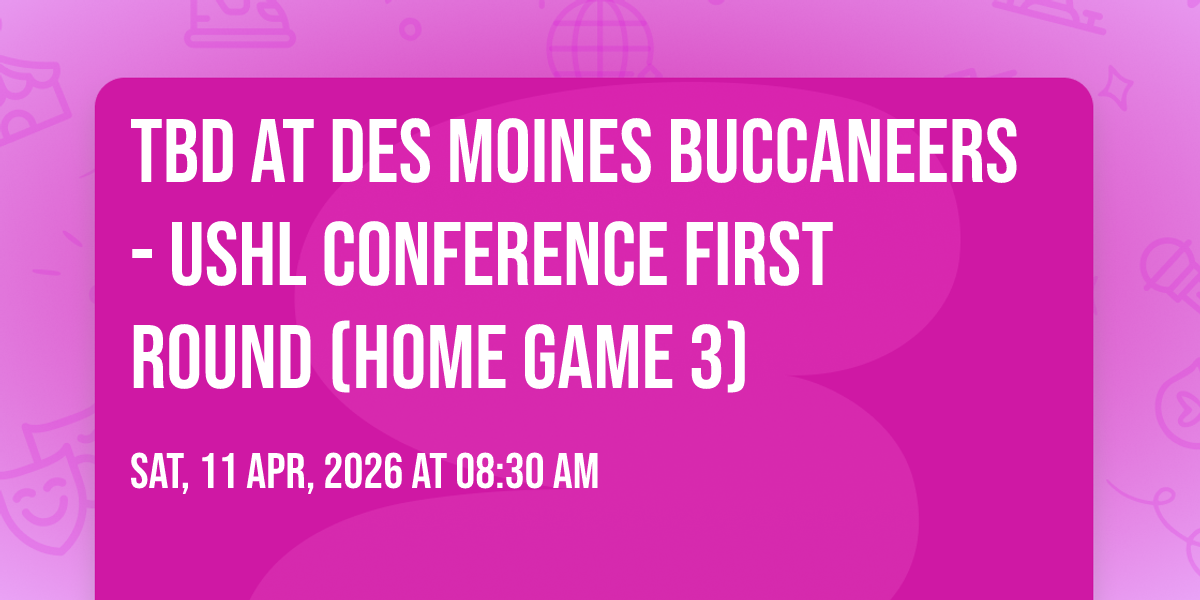 π Location: 41.54, -93.8π Be part of history at TBD at Des Moines Buccaneers - USHL Conference First Round (Home Game 3), an extraordinary gathering that will captivate your imagination! ποΈ The prestigious The MidAmerican Energy Company RecPlex in West Des Moines, IA sets the stage for an unforgettable experience on April 11th, 2026 at 08:30 AM. β¨ They are bringing together the finest elements of entertainment and innovation to create moments that will take your breath away. From the moment you arrive, you'll be immersed in an atmosphere of wonder and excitement. π― This carefully planned event ensures every guest experiences something truly special. π Early booking is recommended for this must-attend event of the season!