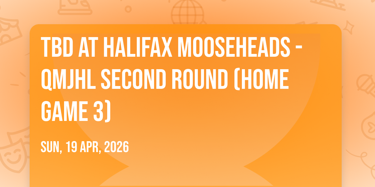π Location: 44.6483, -63.5768β¨ Discover the extraordinary at TBD at Halifax Mooseheads - QMJHL Second Round (Home Game 3), where magic meets reality in ways you've never imagined! ποΈ Set in Scotiabank Centre nestled in bustling Halifax, NS, this event promises to be a landmark occasion. π Taking place on April 19th, 2026 at 06:30 AM, it's going to create an atmosphere where every moment becomes a cherished memory. π Immerse yourself in an experience crafted with attention to every detail, designed to surprise and delight at every turn. They have worked tirelessly to ensure this event exceeds all expectations, bringing together elements of entertainment, innovation, and pure joy. π Don't miss your chance to be part of this remarkable journey!