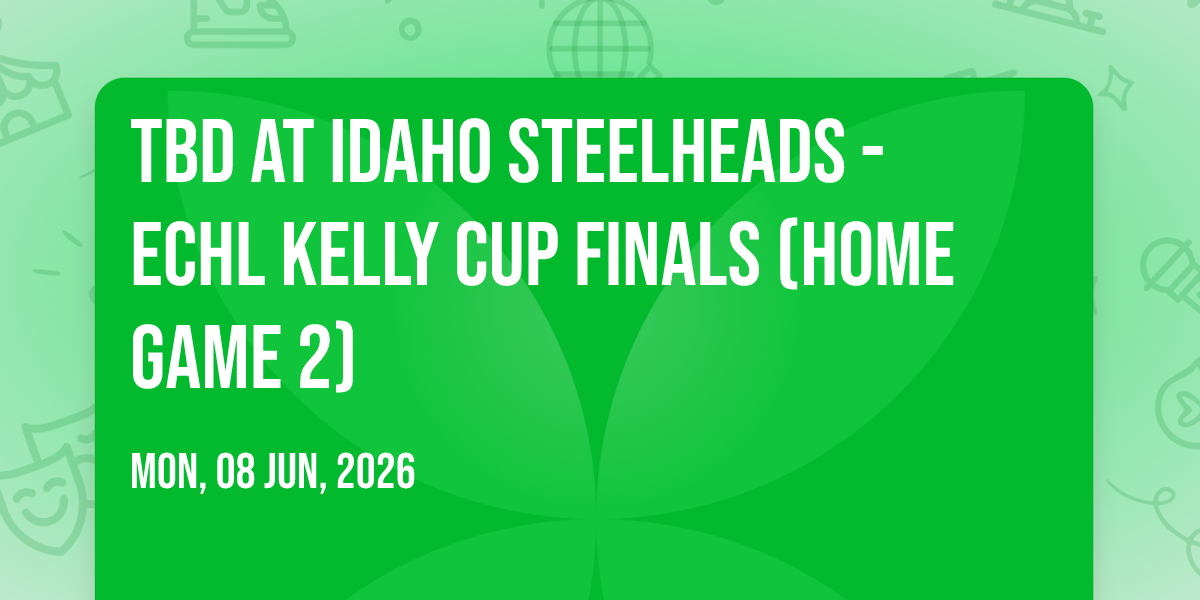 π Location: 43.6146, -116.204π Prepare to be amazed at TBD at Idaho Steelheads - ECHL Kelly Cup Finals (Home Game 2), the most anticipated gathering of the season! π Set against the stunning backdrop of Idaho Central Arena in vibrant Boise, ID, this event promises to redefine your expectations. π Mark your calendars for June 8th, 2026 at 09:30 AM and get ready to immerse yourself in an atmosphere of wonder and excitement. β¨ From the moment you arrive, you'll be transported into a world where memories are made and stories come alive. They have crafted an experience that perfectly harmonizes entertainment, innovation, and community spirit. π Join us as we create moments that will be discussed for years!