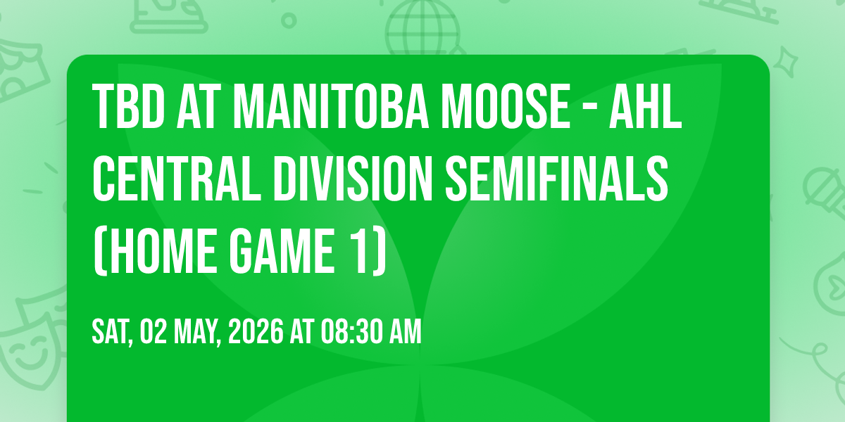 📍 Location: 49.8936, -97.1435✨ Embark on an extraordinary journey at TBD at Manitoba Moose - AHL Central Division Semifinals (Home Game 1), where every moment promises to be unforgettable! 🌟 Imagine of transforming Canada Life Centre in the heart of Winnipeg, MB into a realm of endless possibilities. 📅 Join us on May 2nd, 2026 at 08:30 AM for an experience that will challenge your imagination and exceed your expectations. 🎯 This carefully curated event combines the finest elements of entertainment, innovation, and community spirit. Whether you're an adventure seeker, culture enthusiast, or someone looking for unique experiences, this event offers something special for everyone. 🎊 Don't miss this chance to be part of something extraordinary!