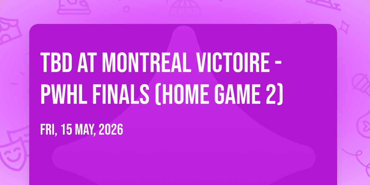 📍 Location: 45.5556, -73.721✨ Discover the extraordinary at TBD at Montreal Victoire - PWHL Finals (Home Game 2), where magic meets reality in ways you've never imagined! 🏛️ Set in Place Bell nestled in bustling Laval, QC, this event promises to be a landmark occasion. 📅 Taking place on May 15th, 2026 at 07:30 AM, it's going to create an atmosphere where every moment becomes a cherished memory. 🌟 Immerse yourself in an experience crafted with attention to every detail, designed to surprise and delight at every turn. They have worked tirelessly to ensure this event exceeds all expectations, bringing together elements of entertainment, innovation, and pure joy. 🎊 Don't miss your chance to be part of this remarkable journey!