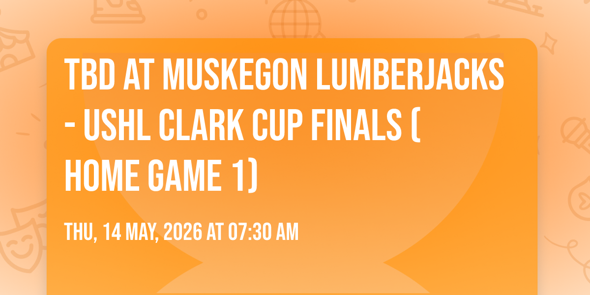 π Location: 43.2347, -86.2548β¨ Embark on an extraordinary journey at TBD at Muskegon Lumberjacks - USHL Clark Cup Finals (Home Game 1), where every moment promises to be unforgettable! π Imagine of transforming Trinity Health Arena in the heart of Muskegon, MI into a realm of endless possibilities. π Join us on May 14th, 2026 at 07:30 AM for an experience that will challenge your imagination and exceed your expectations. π― This carefully curated event combines the finest elements of entertainment, innovation, and community spirit. Whether you're an adventure seeker, culture enthusiast, or someone looking for unique experiences, this event offers something special for everyone. π Don't miss this chance to be part of something extraordinary!