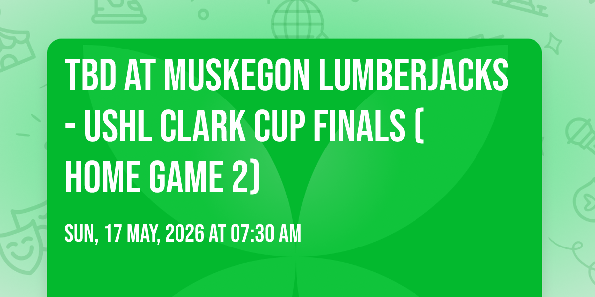 📍 Location: 43.2347, -86.2548🌟 Journey into wonder at TBD at Muskegon Lumberjacks - USHL Clark Cup Finals (Home Game 2), where extraordinary experiences await around every corner! 🏛️ Set against the backdrop of Trinity Health Arena in dynamic Muskegon, MI, this event promises to exceed all expectations. 📅 Join us on May 17th, 2026 at 07:30 AM for a celebration that combines innovation, entertainment, and community spirit in perfect harmony. ✨ There will be an atmosphere where memories are made and stories come alive, ensuring every guest experiences something truly remarkable. 🎊 This is more than just an event; it's a journey into the extraordinary!
