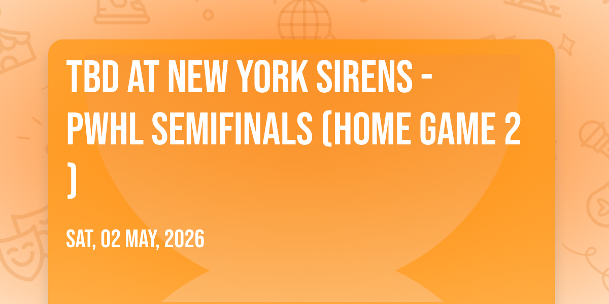 π Location: 40.7332, -74.1717β¨ Embark on an extraordinary journey at TBD at New York Sirens - PWHL Semifinals (Home Game 2), where every moment promises to be unforgettable! π Imagine of transforming Prudential Center in the heart of Newark, NJ into a realm of endless possibilities. π Join us on May 2nd, 2026 at 07:30 AM for an experience that will challenge your imagination and exceed your expectations. π― This carefully curated event combines the finest elements of entertainment, innovation, and community spirit. Whether you're an adventure seeker, culture enthusiast, or someone looking for unique experiences, this event offers something special for everyone. π Don't miss this chance to be part of something extraordinary!