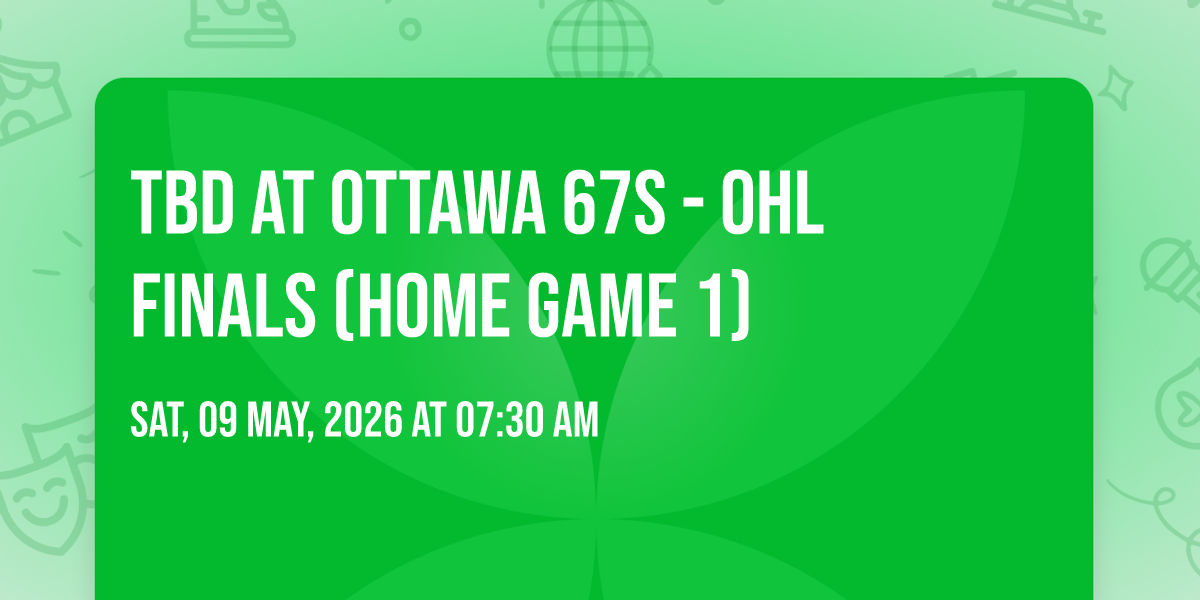 📍 Location: 45.3981, -75.6836🌟 Journey into wonder at TBD at Ottawa 67s - OHL Finals (Home Game 1), where extraordinary experiences await around every corner! 🏛️ Set against the backdrop of The Arena at TD Place in dynamic Ottawa, ON, this event promises to exceed all expectations. 📅 Join us on May 9th, 2026 at 07:30 AM for a celebration that combines innovation, entertainment, and community spirit in perfect harmony. ✨ There will be an atmosphere where memories are made and stories come alive, ensuring every guest experiences something truly remarkable. 🎊 This is more than just an event; it's a journey into the extraordinary!