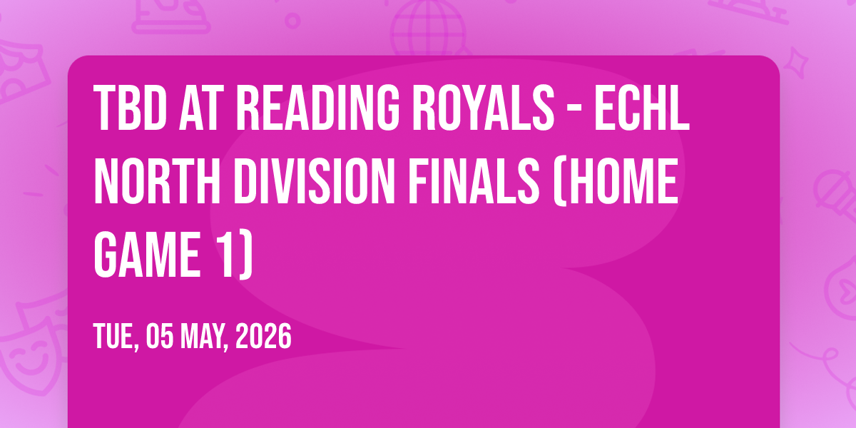 π Location: 40.3351, -75.9233π Prepare to be amazed at TBD at Reading Royals - ECHL North Division Finals (Home Game 1), the most anticipated gathering of the season! π Set against the stunning backdrop of Santander Arena in vibrant Reading, PA, this event promises to redefine your expectations. π Mark your calendars for May 9th, 2026 at 07:30 AM and get ready to immerse yourself in an atmosphere of wonder and excitement. β¨ From the moment you arrive, you'll be transported into a world where memories are made and stories come alive. They have crafted an experience that perfectly harmonizes entertainment, innovation, and community spirit. π Join us as we create moments that will be discussed for years!