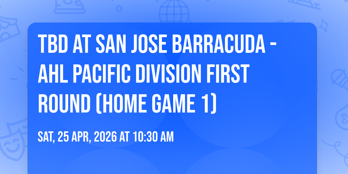 π Location: 37.3184, -121.863β¨ Embark on an extraordinary journey at TBD at San Jose Barracuda - AHL Pacific Division First Round (Home Game 1), where every moment promises to be unforgettable! π Imagine of transforming Tech CU Arena in the heart of San Jose, CA into a realm of endless possibilities. π Join us on April 25th, 2026 at 10:30 AM for an experience that will challenge your imagination and exceed your expectations. π― This carefully curated event combines the finest elements of entertainment, innovation, and community spirit. Whether you're an adventure seeker, culture enthusiast, or someone looking for unique experiences, this event offers something special for everyone. π Don't miss this chance to be part of something extraordinary!