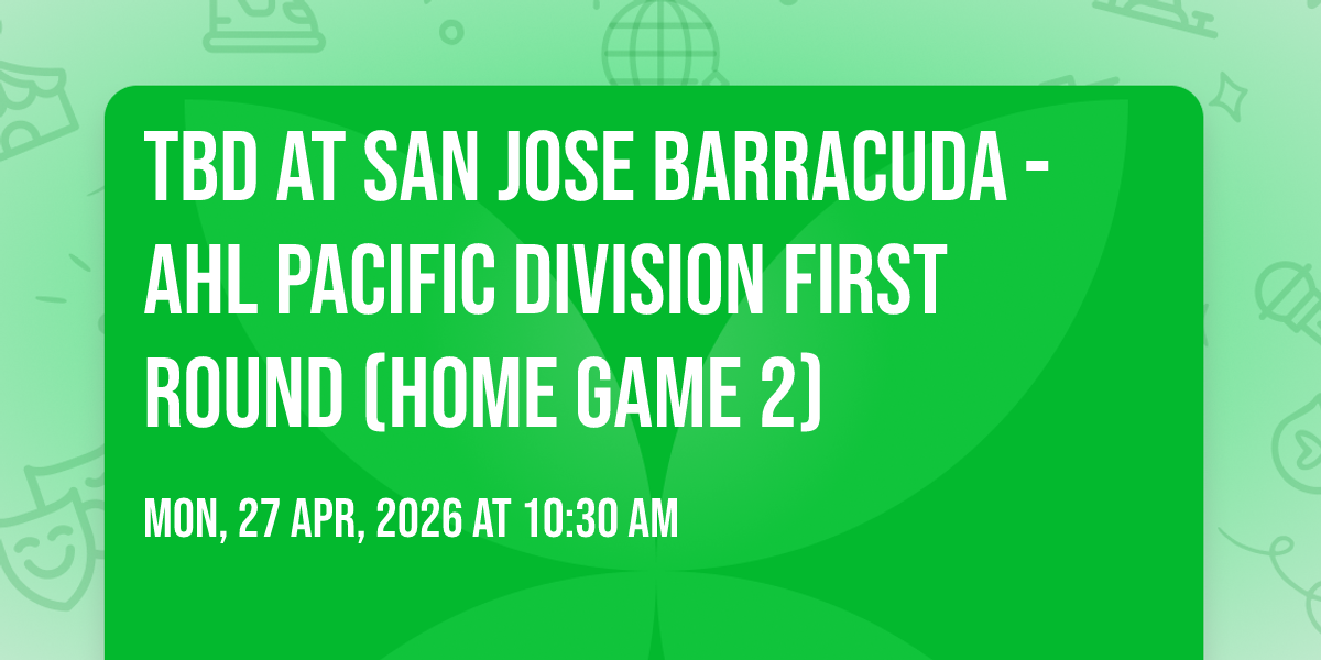 π Location: 37.3184, -121.863π Journey into wonder at TBD at San Jose Barracuda - AHL Pacific Division First Round (Home Game 2), where extraordinary experiences await around every corner! ποΈ Set against the backdrop of Tech CU Arena in dynamic San Jose, CA, this event promises to exceed all expectations. π Join us on April 27th, 2026 at 10:30 AM for a celebration that combines innovation, entertainment, and community spirit in perfect harmony. β¨ There will be an atmosphere where memories are made and stories come alive, ensuring every guest experiences something truly remarkable. π This is more than just an event; it's a journey into the extraordinary!
