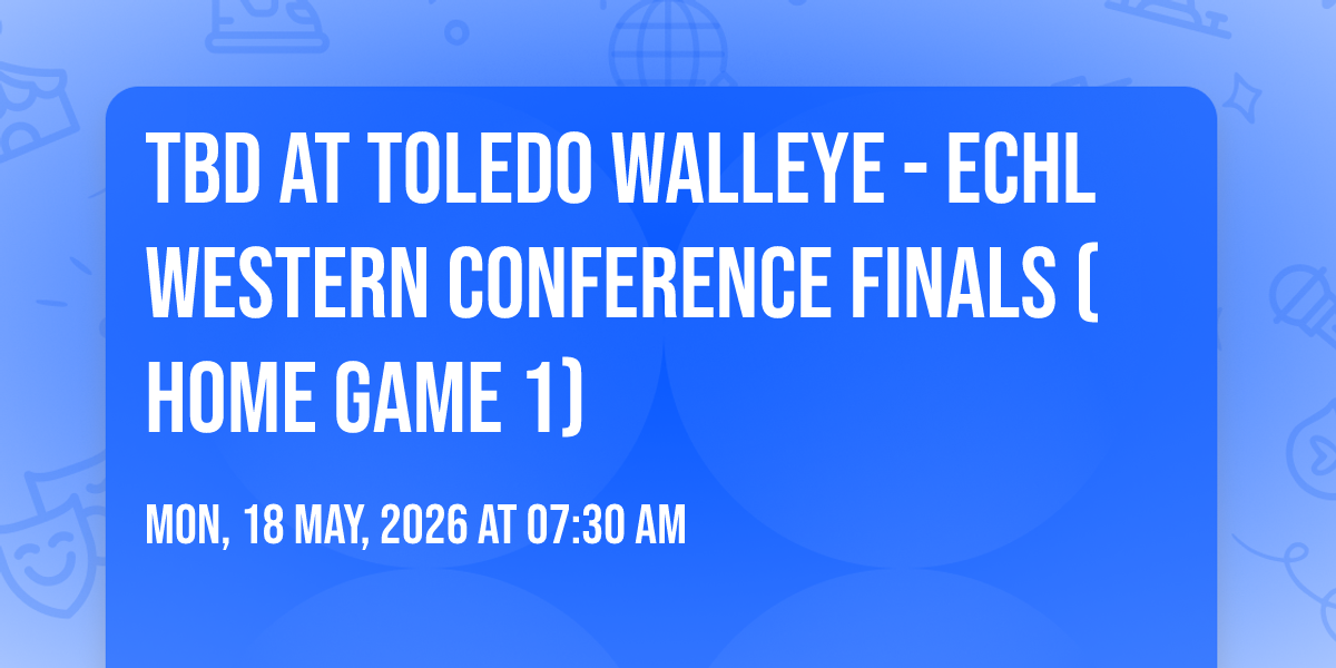 π Location: 41.6512, -83.5366β¨ Embark on an extraordinary journey at TBD at Toledo Walleye - ECHL Western Conference Finals (Home Game 1), where every moment promises to be unforgettable! π Imagine of transforming Huntington Center in the heart of Toledo, OH into a realm of endless possibilities. π Join us on May 18th, 2026 at 07:30 AM for an experience that will challenge your imagination and exceed your expectations. π― This carefully curated event combines the finest elements of entertainment, innovation, and community spirit. Whether you're an adventure seeker, culture enthusiast, or someone looking for unique experiences, this event offers something special for everyone. π Don't miss this chance to be part of something extraordinary!