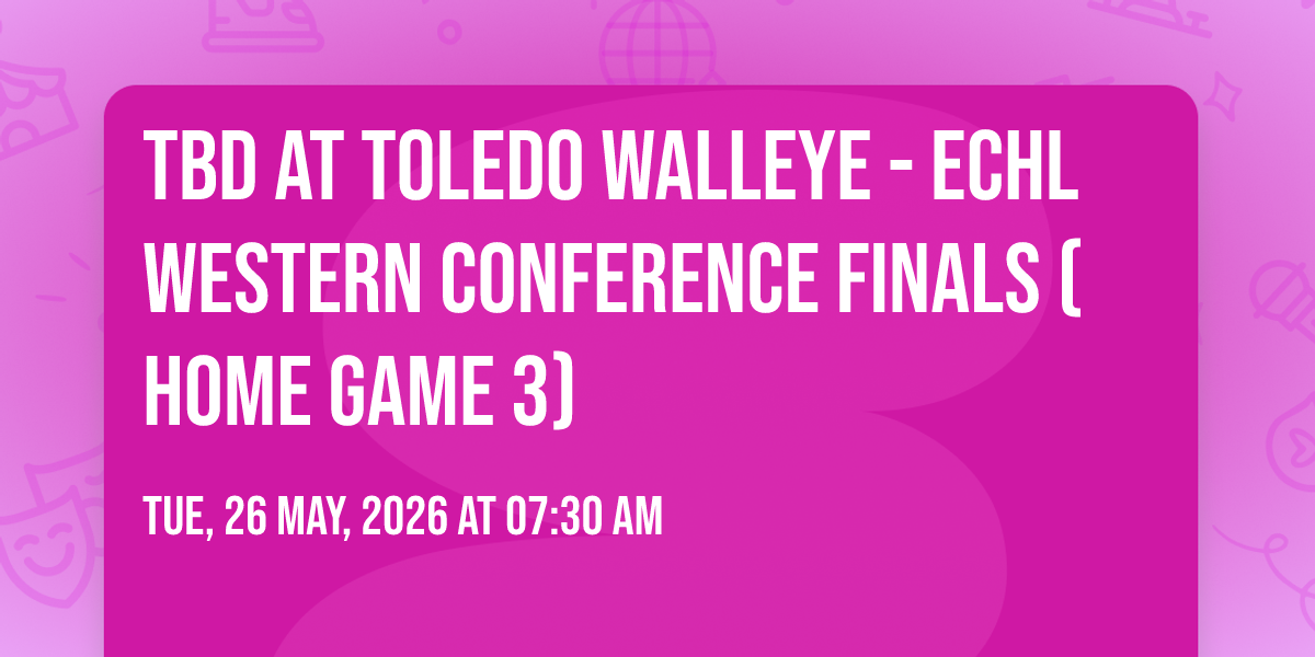 π Location: 41.6512, -83.5366β¨ Enter a world of endless possibilities at TBD at Toledo Walleye - ECHL Western Conference Finals (Home Game 3), where every moment tells a story! ποΈ The stunning Huntington Center in vibrant Toledo, OH transforms into a realm of wonder on May 26th, 2026 at 07:30 AM. π They have crafted an experience that goes beyond the ordinary, combining elements of surprise, delight, and pure entertainment. Every detail has been thoughtfully considered to ensure your journey with us is nothing short of extraordinary. π― Join fellow adventure seekers and memory makers in this celebration of imagination and innovation. π Reserve your spot today and be part of something truly special!