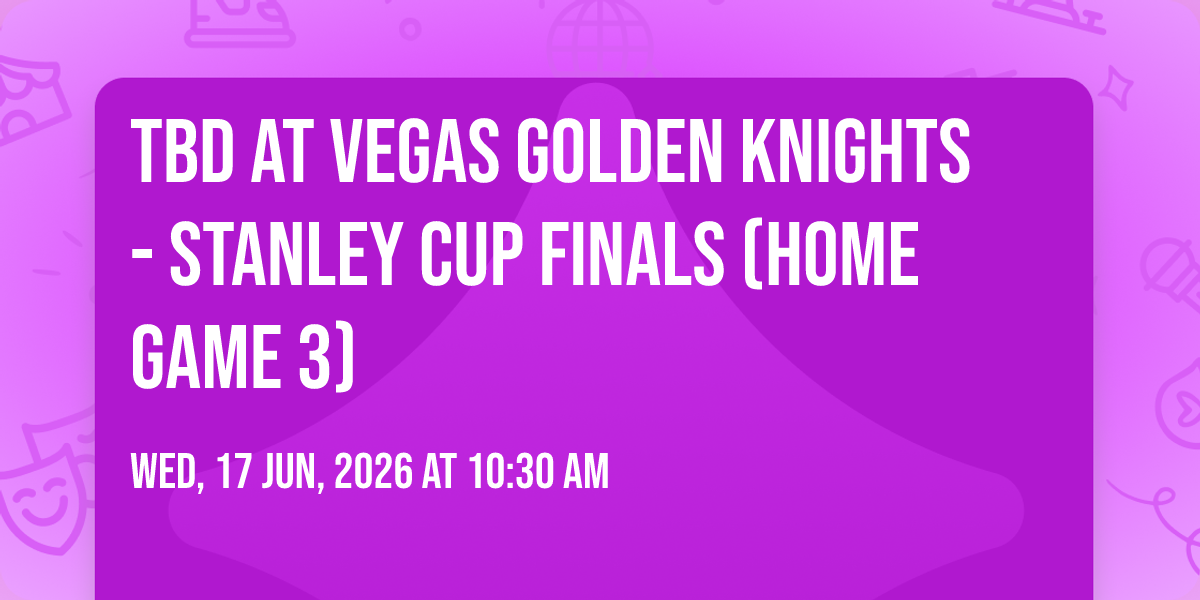 π Location: 36.1029, -115.178β¨ Enter a world of endless possibilities at TBD at Vegas Golden Knights - Stanley Cup Finals (Home Game 3), where every moment tells a story! ποΈ The stunning T-Mobile Arena in vibrant Las Vegas, NV transforms into a realm of wonder on June 17th, 2026 at 10:30 AM. π They have crafted an experience that goes beyond the ordinary, combining elements of surprise, delight, and pure entertainment. Every detail has been thoughtfully considered to ensure your journey with us is nothing short of extraordinary. π― Join fellow adventure seekers and memory makers in this celebration of imagination and innovation. π Reserve your spot today and be part of something truly special!