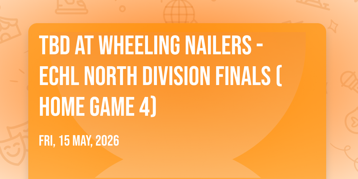 π Location: 40.066, -80.7179π Be part of history at TBD at Wheeling Nailers - ECHL North Division Finals (Home Game 4), an extraordinary gathering that will captivate your imagination! ποΈ The prestigious Wesbanco Arena in Wheeling, WV sets the stage for an unforgettable experience on May 15th, 2026 at 07:30 AM. β¨ They are bringing together the finest elements of entertainment and innovation to create moments that will take your breath away. From the moment you arrive, you'll be immersed in an atmosphere of wonder and excitement. π― This carefully planned event ensures every guest experiences something truly special. π Early booking is recommended for this must-attend event of the season!