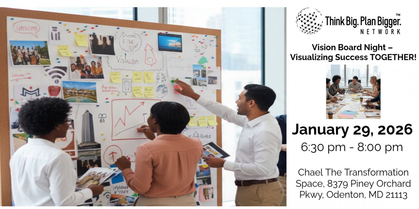 Join us on January 29, 2026, for an exciting evening to connect, create, and manifest your biggest goals, from 6:30 pm to 8:00 pm at Chael The Transformation Space, 8379 Piney Orchard Pkwy, Odenton, MD 21113.