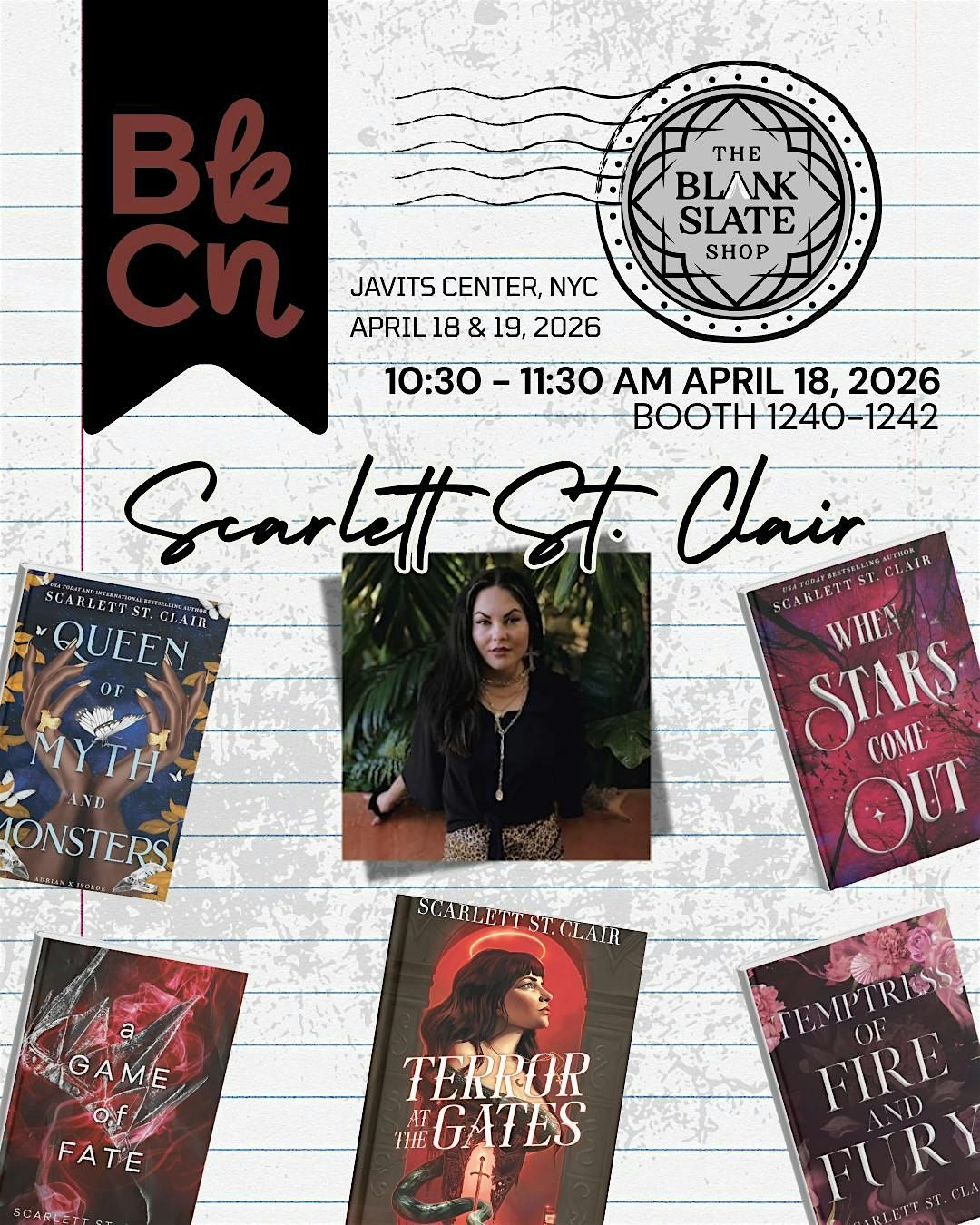 Scarlett St. Clair is joining The Blank Slate Shop (booth 1240-1242) at BookCon 2026!