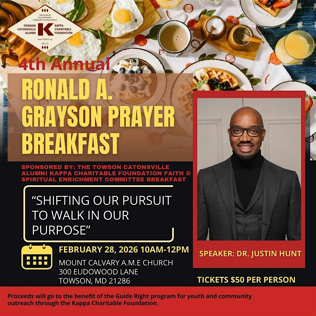 Join us for the 4th Annual Ronald A. Grayson Prayer Breakfast, hosted by the Towson-Catonsville Alumni Kappa Charitable Foundation and the Faith & Spiritual Enrichment Committee.
