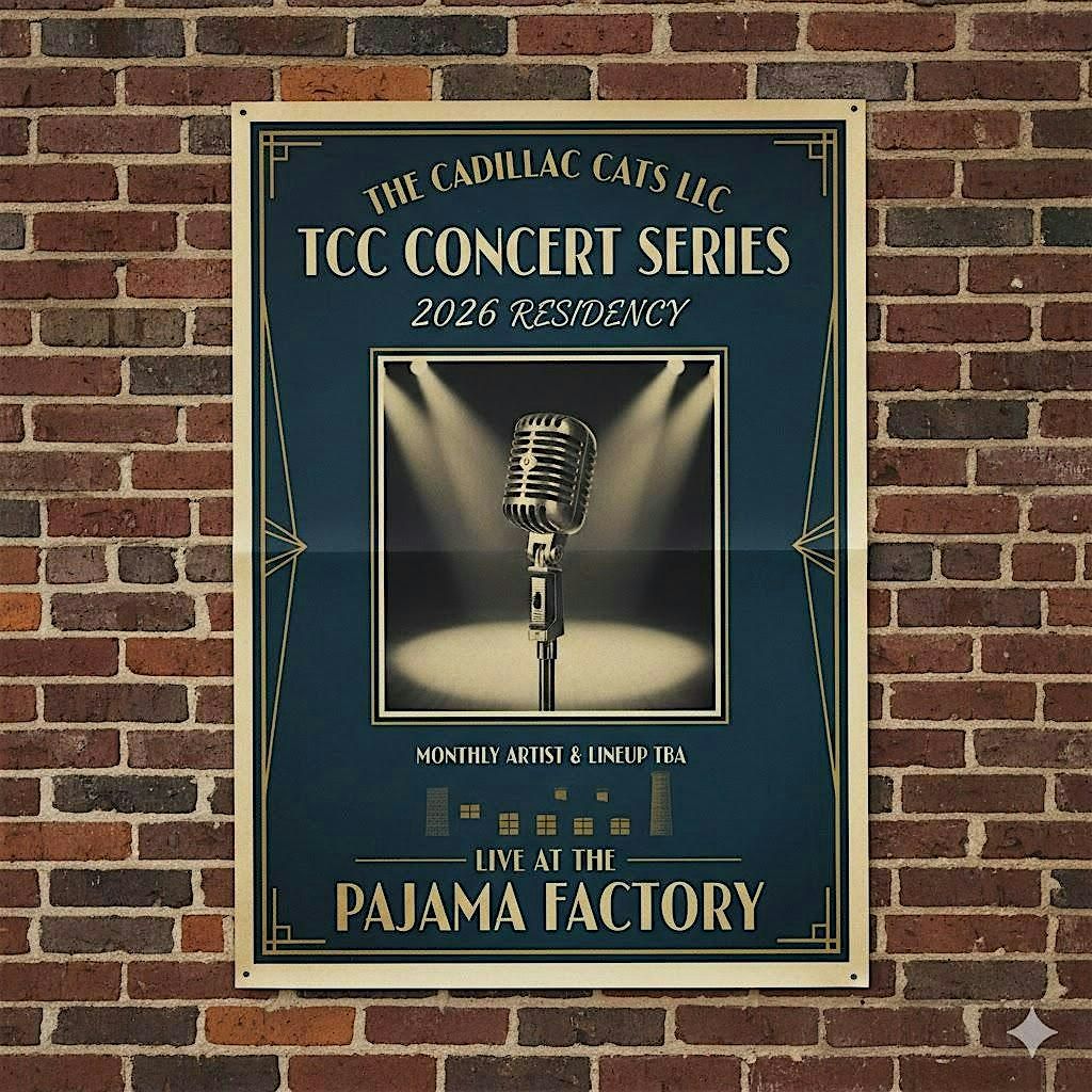 Kick off the 2026 TCC Concert Series at the Pajama Factory! Hosted by The Cadillac Cats LLC, this monthly residency is dedicated to Williamsport’s creative economy. We pair regional music with local food vendors and visual artists to keep our community connected. WHAT TO EXPECT: • MUSIC: Featured regional headliners (Announced monthly). • ART: Showcasing our monthly Art Contest winners. • FOOD: Local Williamsport food vendors on-site. Support the movement and keep the music alive.