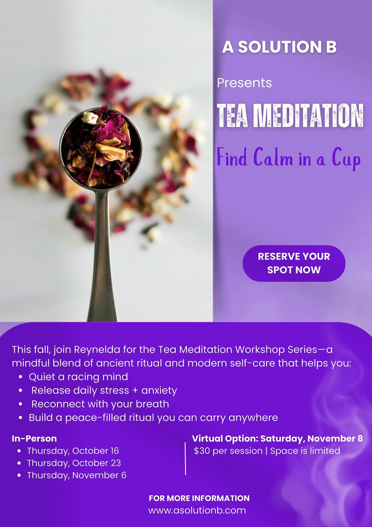 Experience calm through mindful ritual — 3 in-person sessions + 1 virtual option this fall.