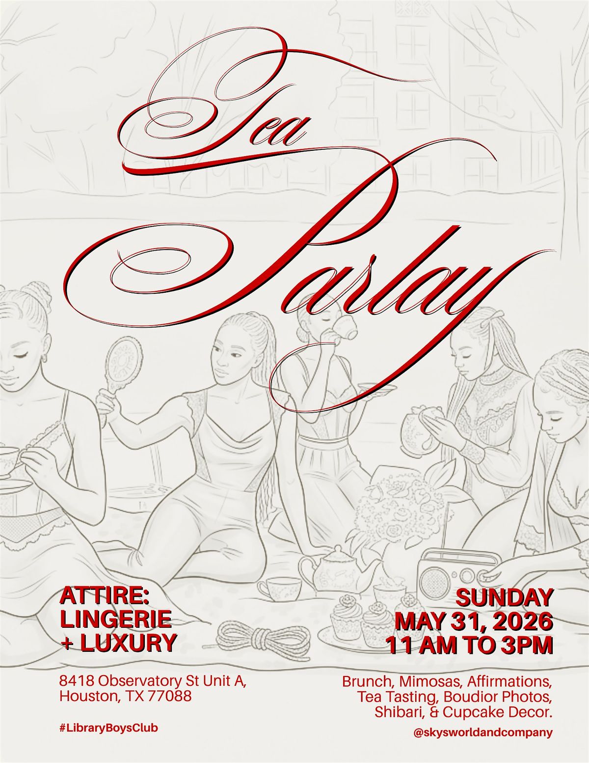 Step into an afternoon of elegance, confidence, and playful luxury at Tea Parlay: Lingerie & Luxury—an immersive brunch experience designed to celebrate self-expression, beauty, and indulgence. Guests will enjoy a curated morning of sensual wellness, creativity, and social connection in an intimate setting.