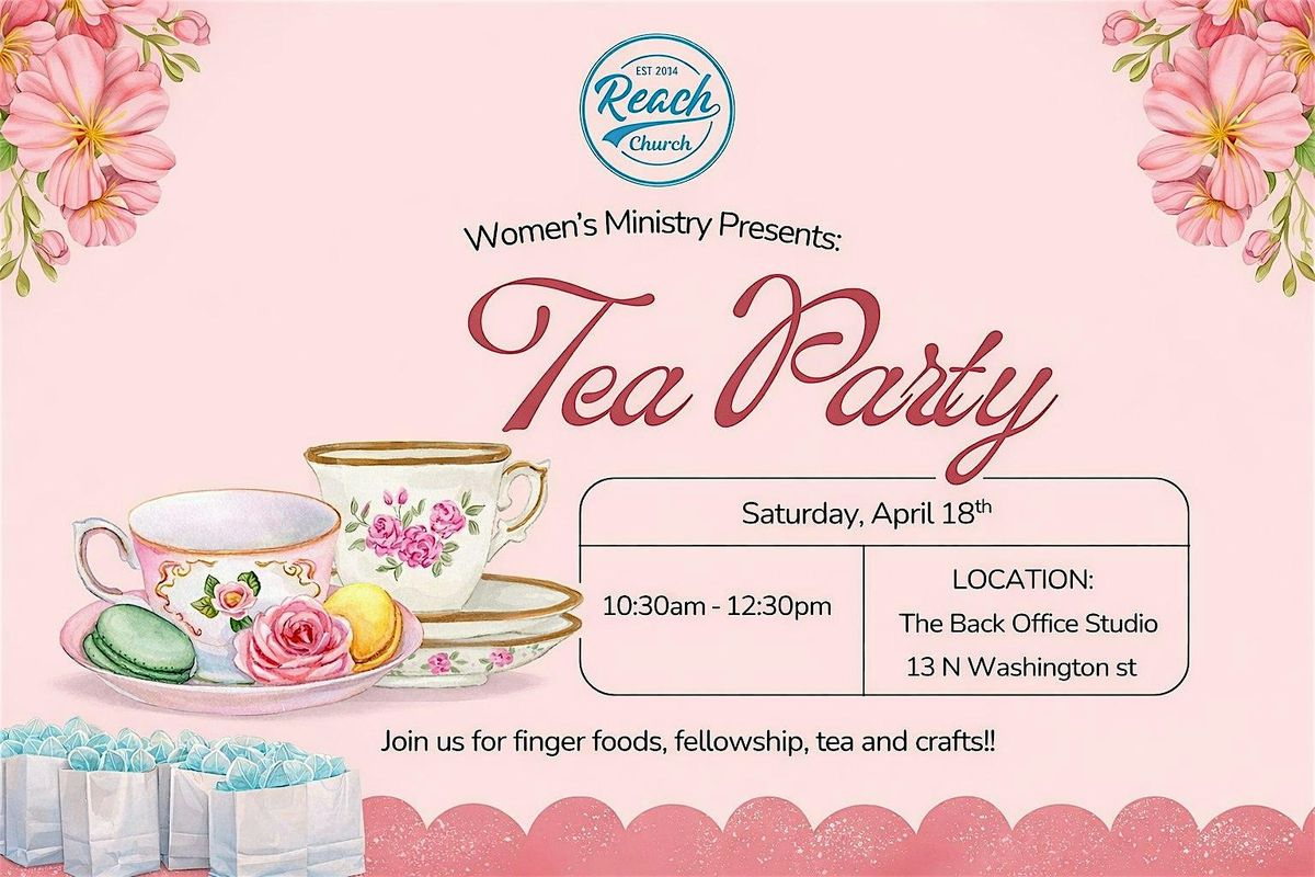 Hey Women of Reach Church, Join us for a fun and relaxed Tea Party where you can sip on your favorite brews, make a beautiful craft for us to wear that Sunday, and enjoy God's love together. It’s an in-person gathering perfect for taking a break and making new connections. Don’t miss out on the good vibes and tasty tea with the women of Reach Church.