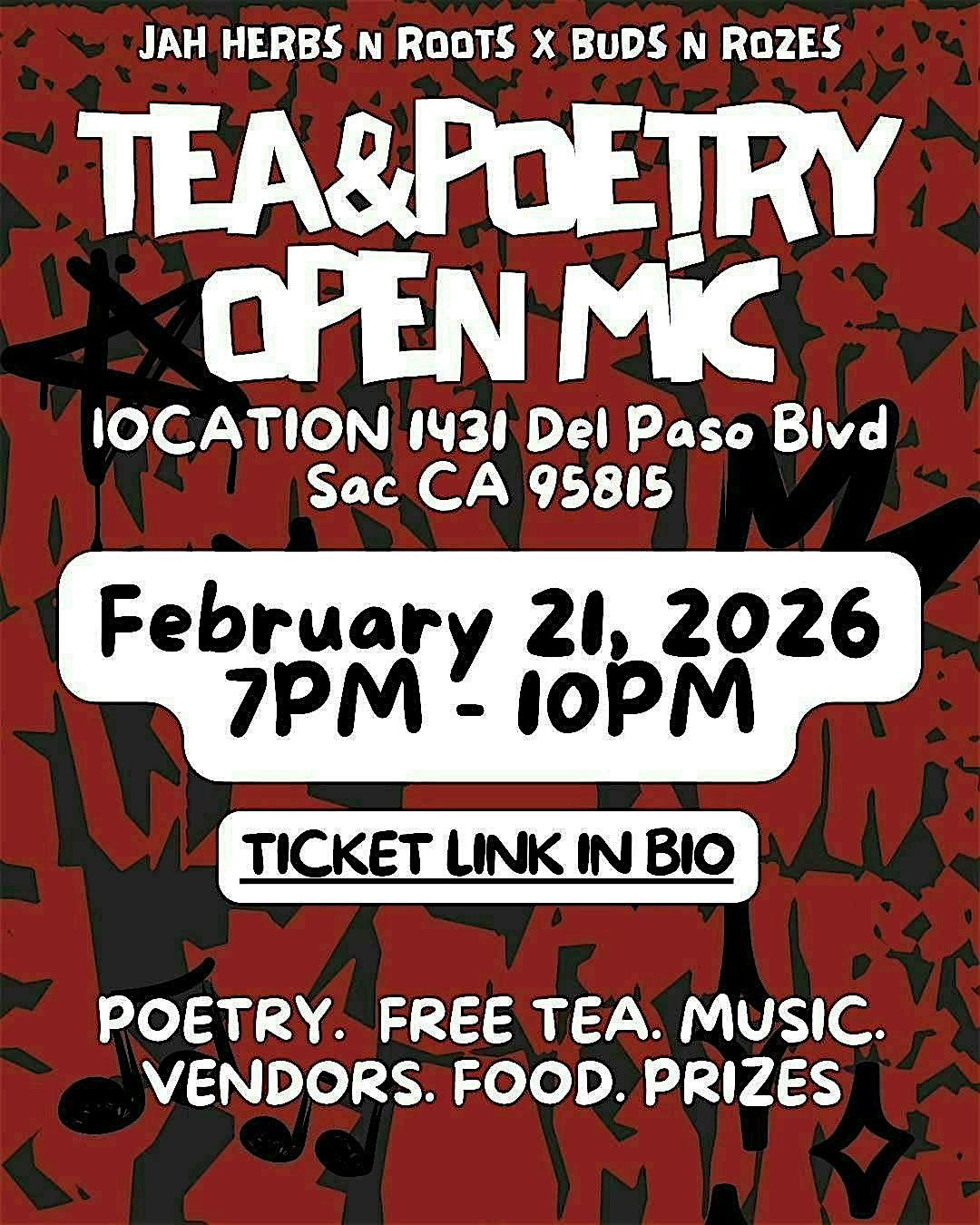 Enjoy performances from local poets and artists! Support local entrepreneurs and enjoy great food music and VIBES!