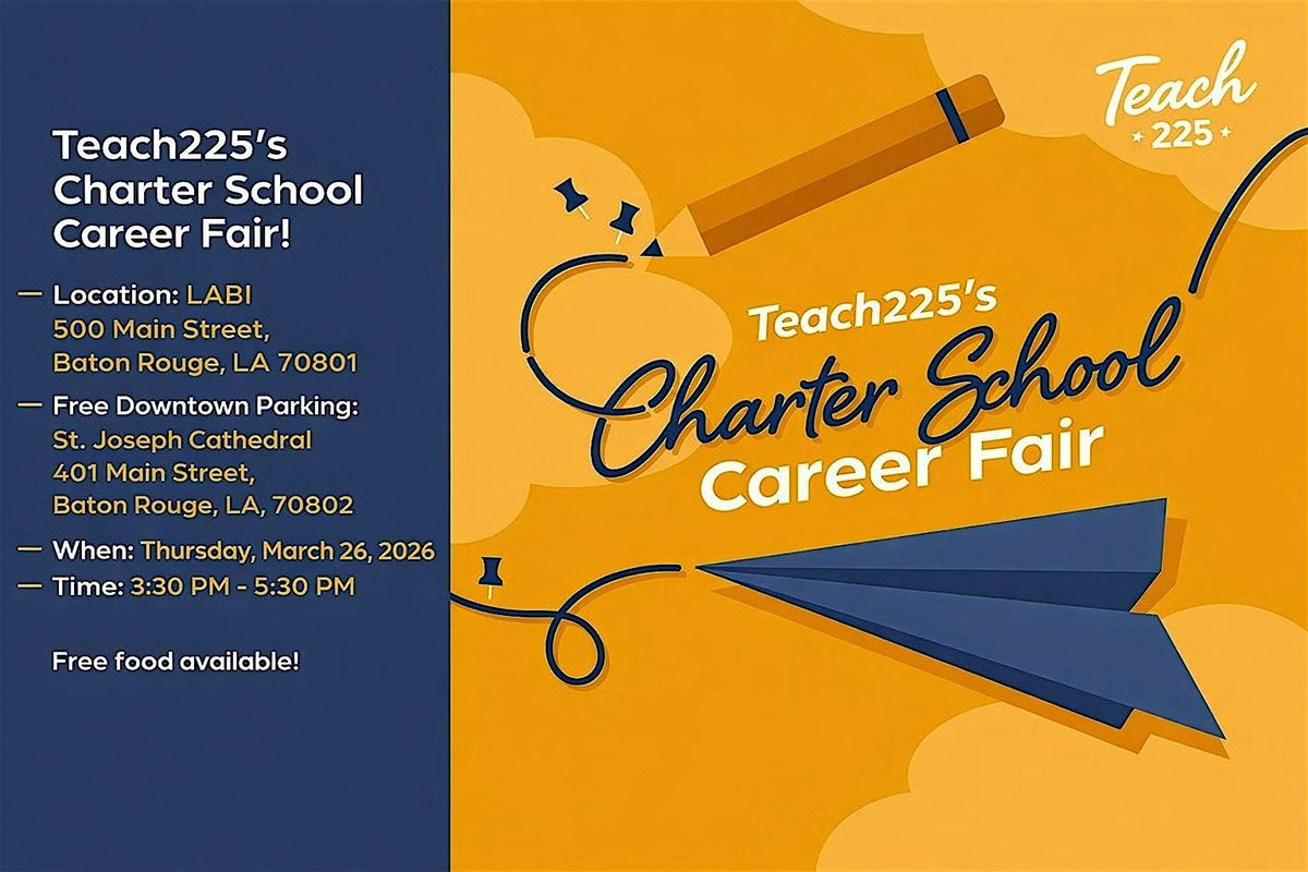 Teach225 is hosting a FREE, in-person Charter School Teacher Career Fair on Thursday, March 26, 2026, from 3:30 p.m. – 5:30 p.m.!