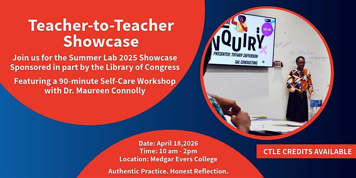 On April 18, join us at Medgar Evers College for a practitioner-focused space that prioritizes real classroom artifacts and professional dialogue.This event stems from Summer Lab 2025, sponsored in part by the Library of Congress TPS program.You will hear directly from teachers who have spent a year implementing and refining inquiry-based units grounded in primary sources.