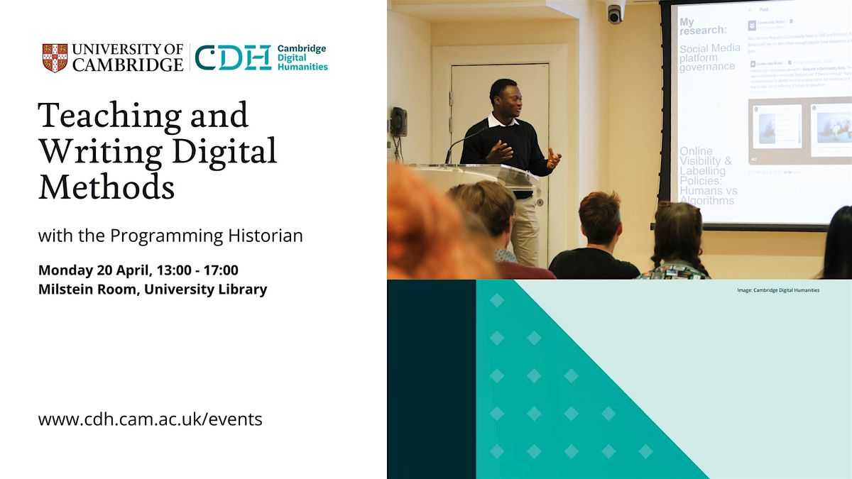 Our CDH Methods workshops have limited places and prioritise students and staff at the University of Cambridge. However, if space is available, we welcome all participants interested in learning about and applying digital methods and tools in their research. This session may be particularly relevant to:
