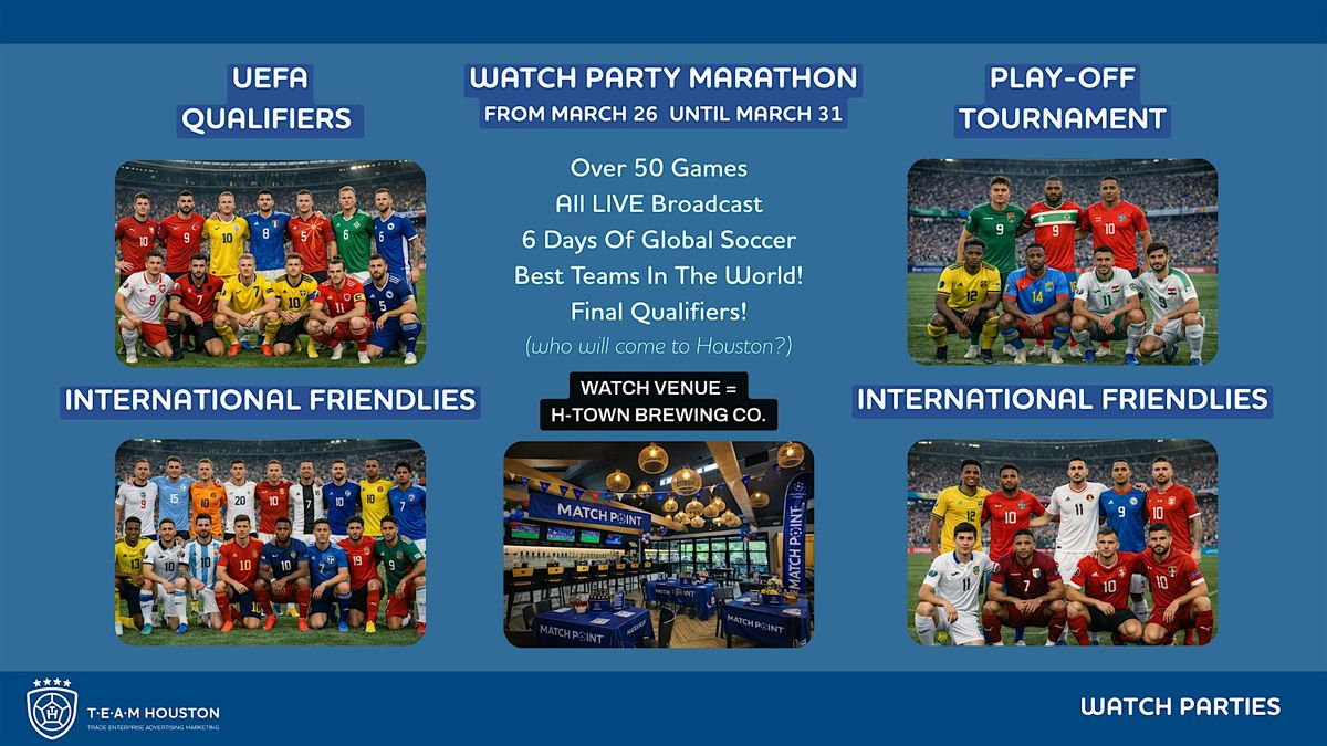 T.E.A.M. Houston - Soccer Watch Party Marathon - Qualifiers & Friendlies