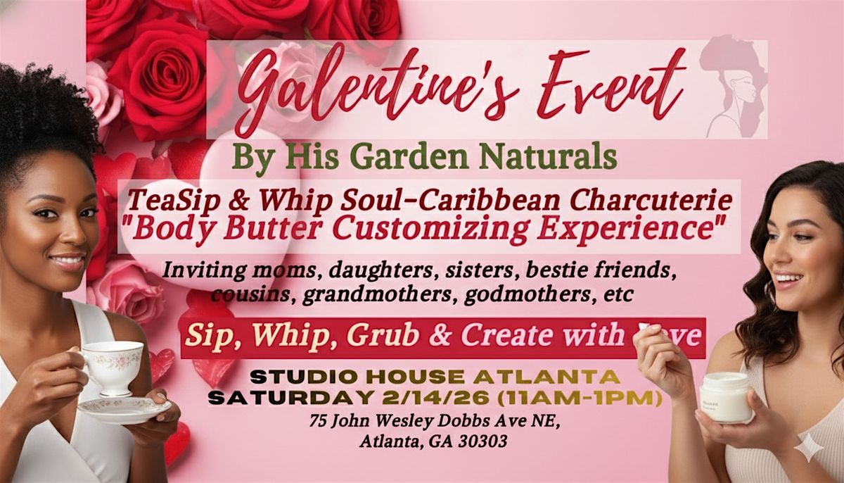 LADIES come gather together on Valentine's Day for a fun and interactive body butter customizing, tea-sipping and charcuterie experience at the The Studio House Atlanta! Customize your own luxurious body butter using natural ingredients like shea, cocoa and mango butter, coconut oil, essential oils. Our team will guide you through the process, ensuring you leave with a personalized product perfect for pampering yourself or gifting to a loved one. Don't miss out on this hands-on experience to indulge in some self-care and creativity!