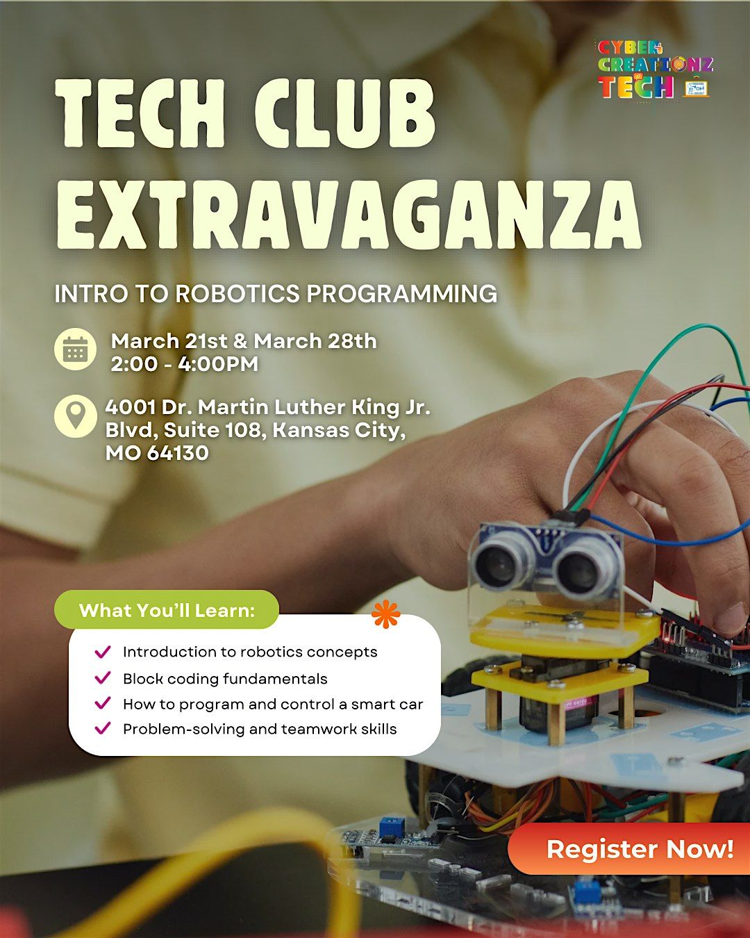 Join Cyber Creationz Tech’s Tech Club Extravaganza where students learn robotics, coding, and compete in a fun team challenge.