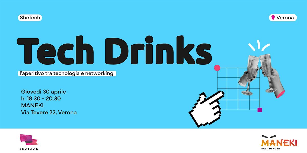 Tech Drinks è il format di SheTech che unisce ispirazione e networking! Un appuntamento per ascoltare storie dal mondo tech e digitale, confrontarsi con professioniste del settore e fare due chiacchiere davanti a un drink con la community.