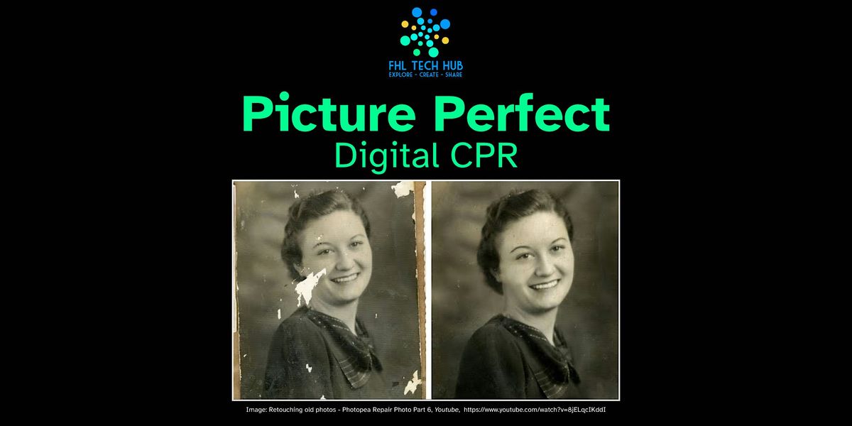 Picture Perfect is an instructor-led workshop designed to introduce you to the basics of digital photo restoration using a free, web-based photo editor. Each participant will have access to a computer workstation for hands-on learning throughout the session. This easy-to-use online environment also provides the perfect foundation for exploring the library’s Adobe Creative Cloud tools at your own pace—helping you continue your creative journey long after the workshop ends.