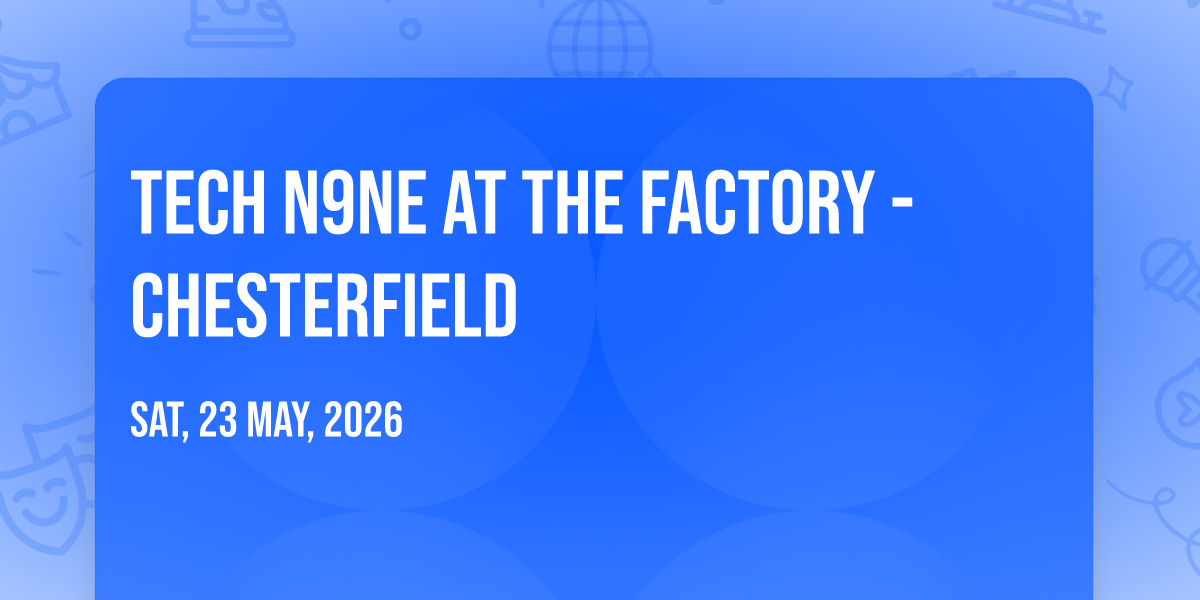 ✨ Discover the extraordinary at Tech N9ne at The Factory - Chesterfield, where magic meets reality in ways you've never imagined! 🏛️ Set in The Factory - Chesterfield nestled in bustling Chesterfield, MO, this event promises to be a landmark occasion. 📅 Taking place on May 23rd, 2026 at 07:30 PM, it's going to create an atmosphere where every moment becomes a cherished memory. 🌟 Immerse yourself in an experience crafted with attention to every detail, designed to surprise and delight at every turn. They have worked tirelessly to ensure this event exceeds all expectations, bringing together elements of entertainment, innovation, and pure joy. 🎊 Don't miss your chance to be part of this remarkable journey!
