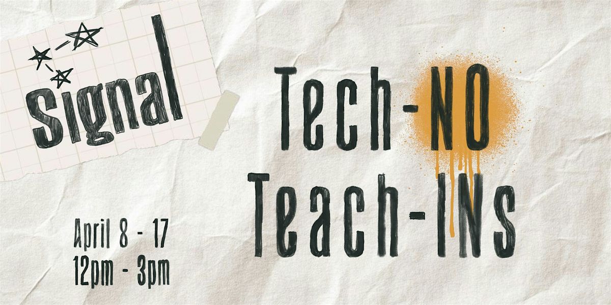 Tech-NO Teach-Ins are being held across the month of April to help us reconnect with analogue forms of creativity that let the mind wander towards the possible of a world where digitial technology is a part of a much larger whole. The Teach-Ins feature a host of creative minds bringing forward practices of creative writing, collage, zine making, and visual art that existed long before social media. They ask us to consider what it is we love to do when we are not scrolling and how we may find our way back to these things as part of our daily practices.