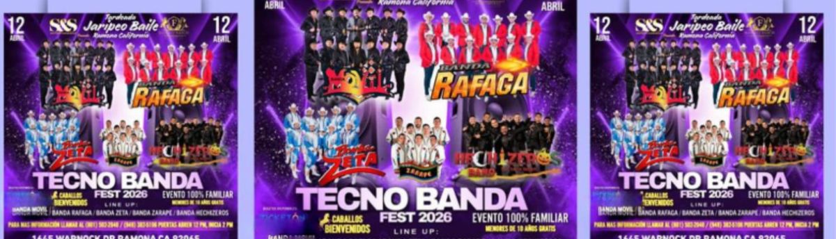 Don't miss 'TECNO BANDA FEST ,BANDA RAFAGA, BANDA ZETA & MAS', the premier exciting event happening at Rancho Ramirez , Ramona, CA, United States. This event showcases the best talent and expertise in the field. Immerse yourself in a world of opportunities and cutting-edge ideas. Claim your ticket to be at the forefront of exciting innovation. #TECNOBANDAFEST,BANDARAFAGA,BANDAZETA&MAS #event #exciting #RamonaEvents #CAEvents