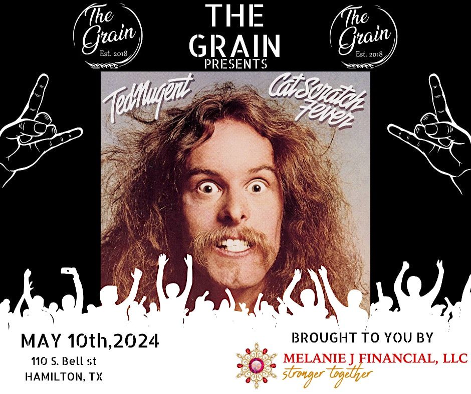 Ted Nugent will be live from The Grain in Hamilton, TX at 110 S Bell St. Early bird general admission tickets will be $35 and will increase as the show gets closer so get those tickets while you can! We will have an exclusive VIP section (contact Matthew at 817-205-2014 for more information). Day of show: $10 to bring your own chair, cash bar available, food vendors on site, Ted comes on at 8:30 but arrive no earlier than 5:00 to claim your spot!