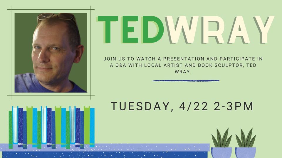 Join us for a special presentation by artist and sculptor Ted Wray. Wray's unique art style and book sculptures are sure to leave you amazed. There will be a short Q&A session following the presentation. To register for events, please click here to access the registration form: https://forms.gle/df8sr9tvywgVkT5u6