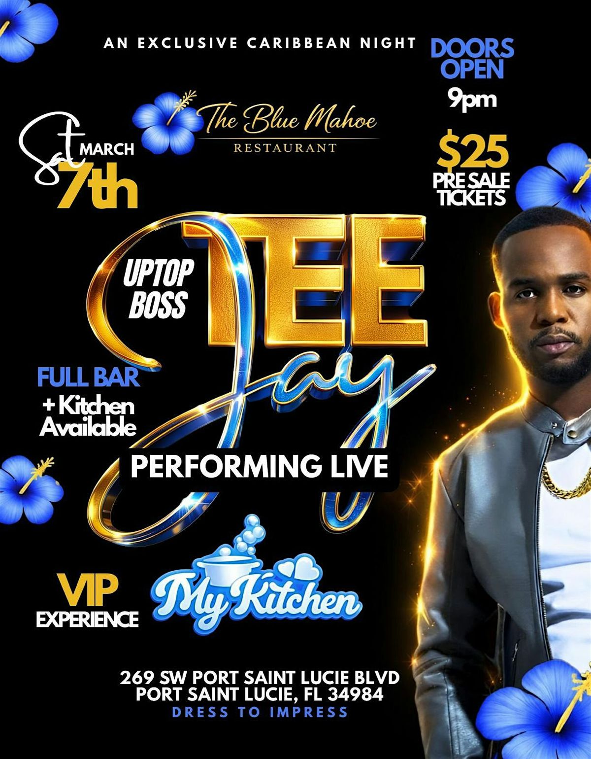Join us Saturday, March 7th as international reggae/dancehall star Uptop Boss Tee Jay takes the stage for a high-energy live performance in an upscale Caribbean atmosphere.
