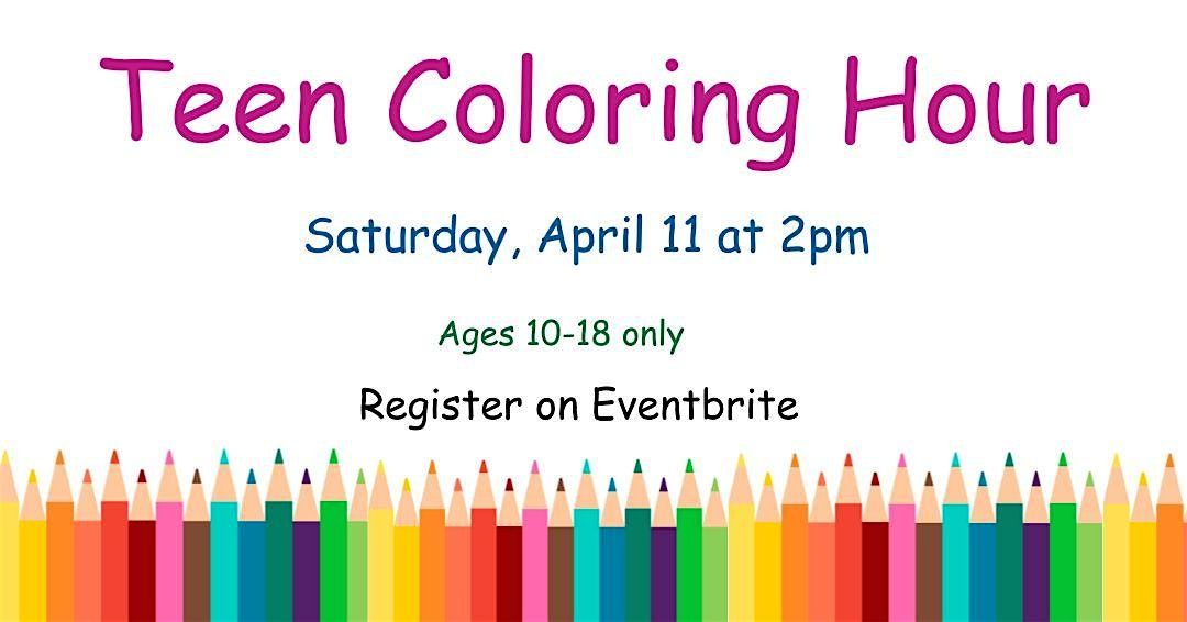 Join us for a relaxing hour of coloring! Ages 10-18 onlyAbout this Event
