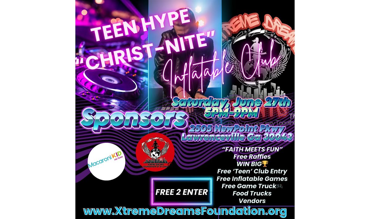 #TeenHype #ChristNite #InflatableFun #FaithMeetsFun #FreeRaffles #LawrencevilleGA #ExtremeDreams #MacaroniKid