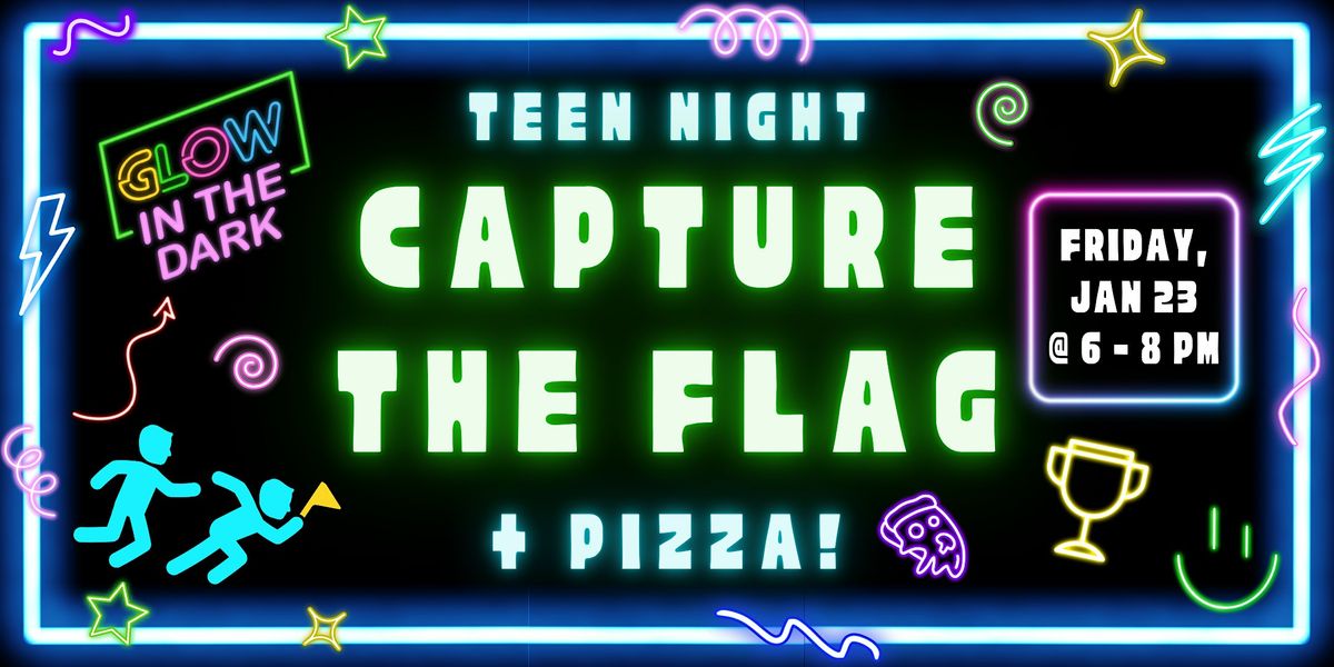 - Join us for a fun night with a competitive game of glow-in-the-dark Capture the Flag after a pizza party!