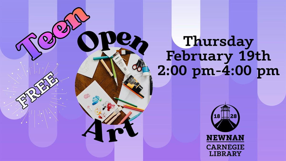 Join us at the Newnan Carnegie Library and make art! All supplies are provided to make whatever kind of art you would like. This program is for ages 11-18.